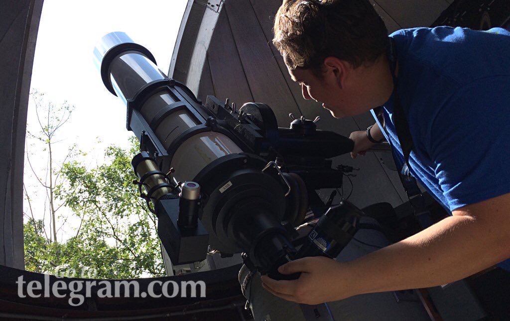 Demonstrating how to properly use a Celestron 8 inch telescope at the EcoTarium during the transit of Mercury event on November 11, 2019